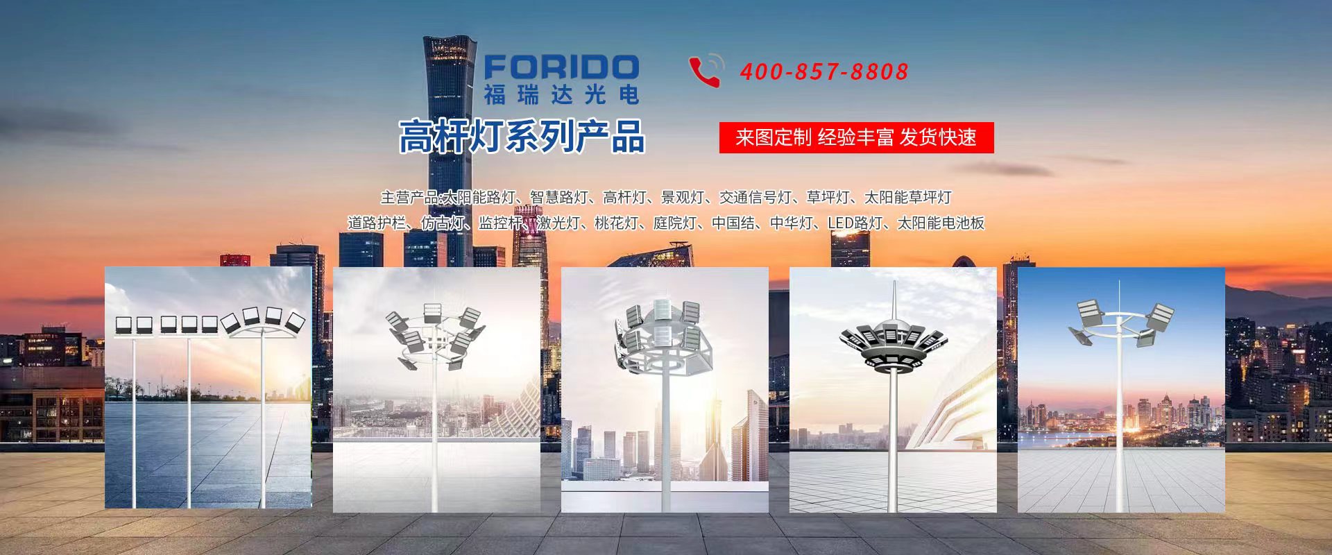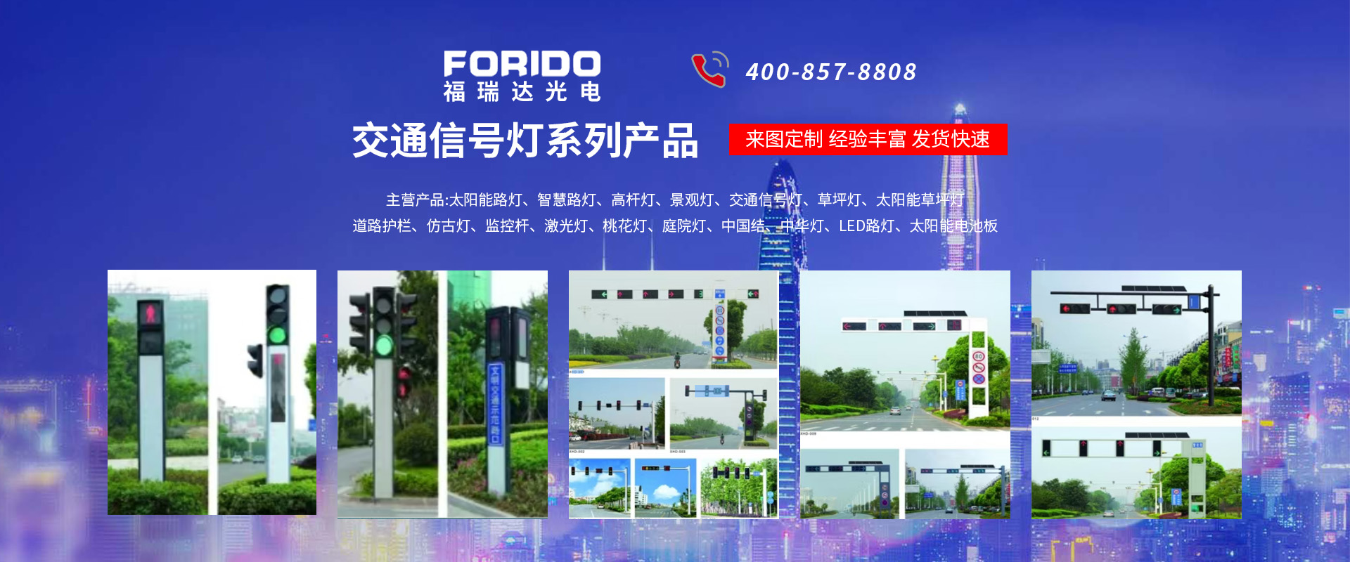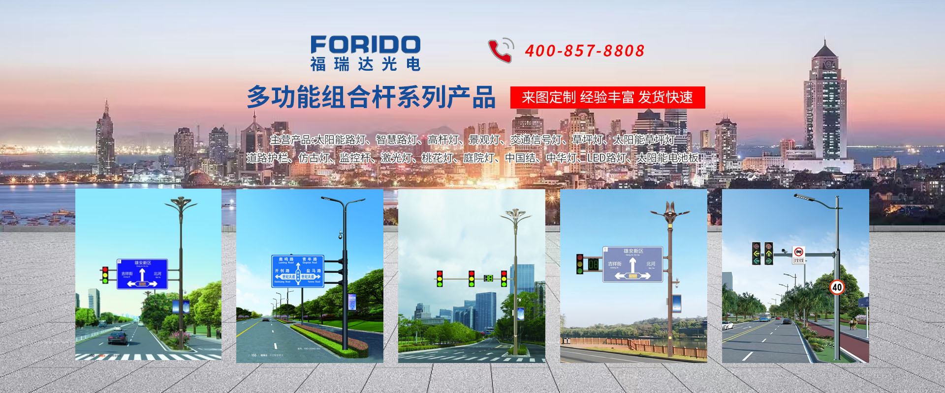 揚州福瑞達光電科技有限公司位于淮左名都歷史文化名城、中國路燈制造基地揚州市北郊菱塘工業(yè)園,公司占地面積76000平方米,注冊資金10518萬元,擁有高級技術(shù)嫻熟的員工280多人,擁有大型折彎機、激光切割、數(shù)控注塑機、壓鑄機、自動埋弧焊、氣焊、彩色粉末靜電噴塑等大型自動化設(shè)備,我公司是一家集設(shè)計、研發(fā)、生產(chǎn)、銷售、施工安裝服務(wù)為一體的戶外交通照明產(chǎn)品制造商,主要生產(chǎn)智慧路燈、太陽能路燈、LED路燈、高桿燈、景觀燈、交通信號燈、交通標(biāo)志牌、通信鐵塔、路跨鋼結(jié)構(gòu)、公交站臺、太陽能光伏組件、景點亮化、樓宇亮化工程的設(shè)計施工等。公司秉承開拓創(chuàng)新、銳意進取、精誠服務(wù)的企業(yè)精神,堅持以“誠信為本、技術(shù)為先、服務(wù)是金”的合作理念,我們憑借先進的制造工藝、優(yōu)質(zhì)的產(chǎn)品質(zhì)量、合理的市場價格和完善的售后服務(wù)贏得了廣闊的市場和客戶的信賴?! ∥夜疽淹ㄟ^ISO9001質(zhì)量體系認(rèn)證、ISO14001環(huán)境管理體認(rèn)證,CQC產(chǎn)品認(rèn)證,中國節(jié)能產(chǎn)品認(rèn)證,通過“CCC”強制性產(chǎn)品認(rèn)證,具有市政總承包,照明,交安,設(shè)計等資質(zhì)···